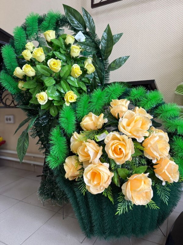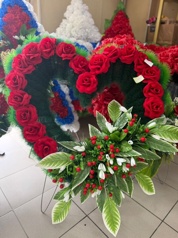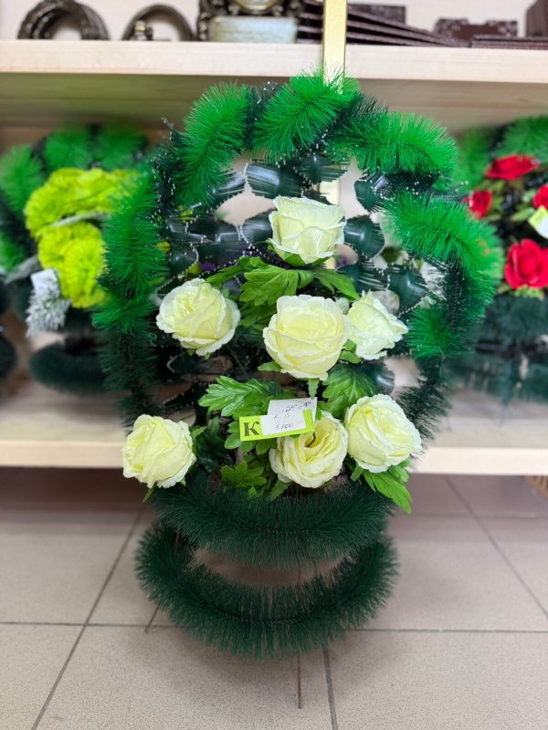 Траурная флористика (венки, корзины, полянки, букеты из искусственных цветов)